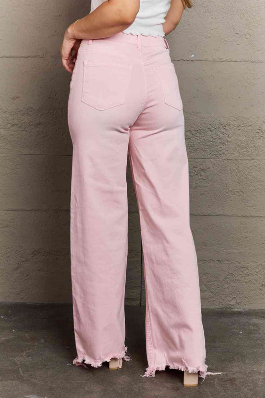 Plus Size High Waist Wide Leg Jeans in Light Pink